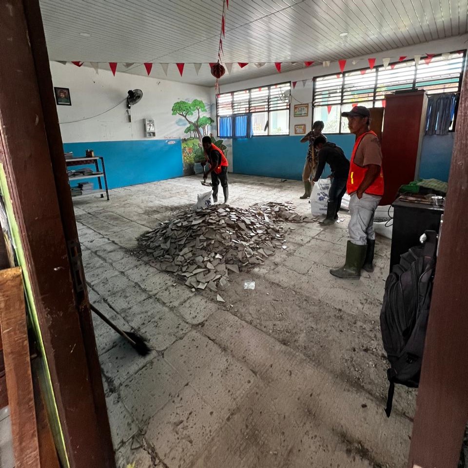 PT Karya Kemala Sakti melaksanakan pekerjaan renovasi dan peningkatan sarana prasarana di SDN 2 Cikokol sebagai bagian dari upaya menciptakan lingkungan belajar yang lebih nyaman, aman, dan layak digunakan.